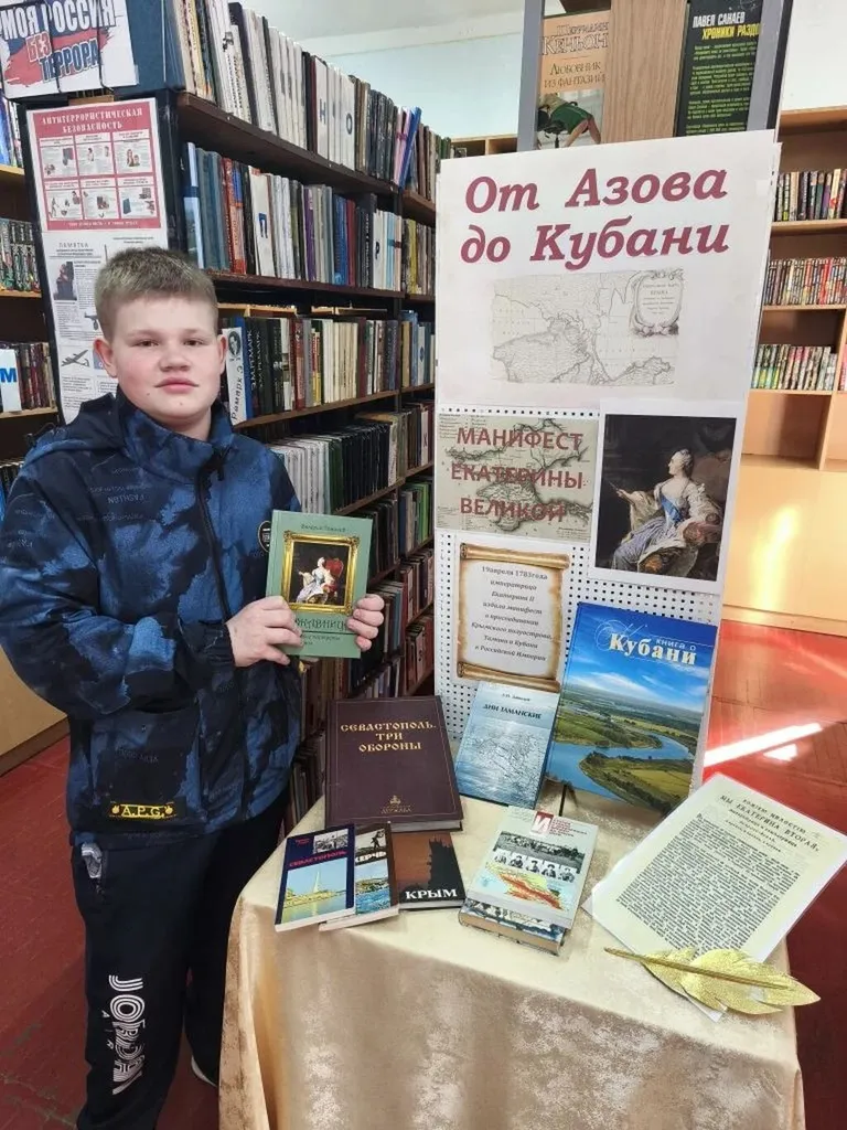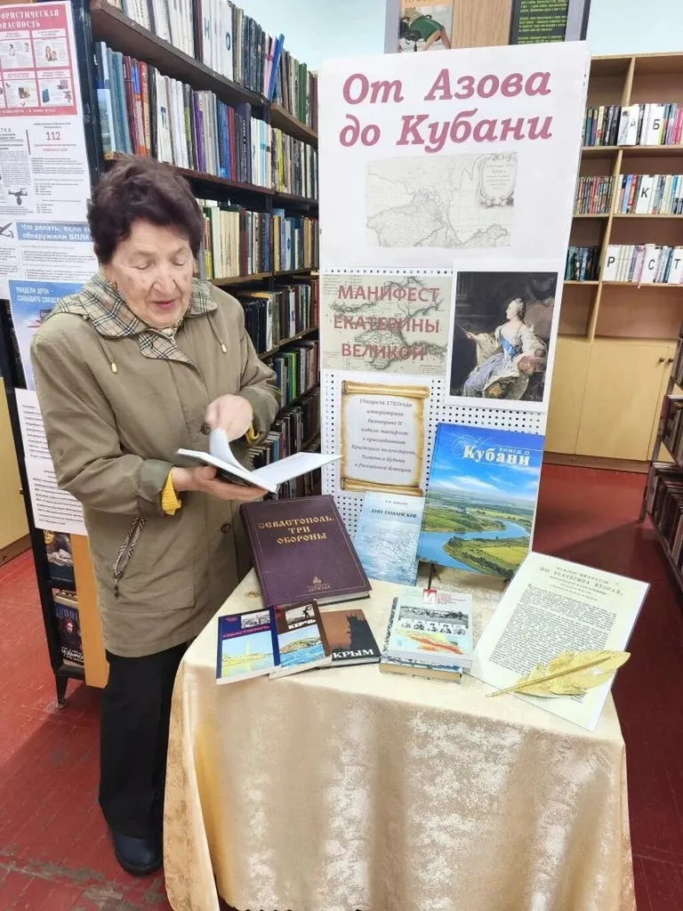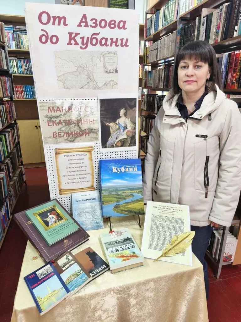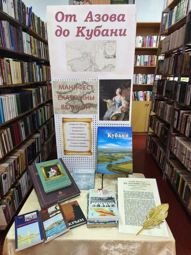 19 апреля - официальная памятная дата, день принятия Крыма, Тамани и Кубани в состав Российской Империи (1783 год), в Успенской поселенческой библиотеке в преддверии этого дня, 16 апреля прошла выставка одного события с обзором литературы "От Азова до Кубани"