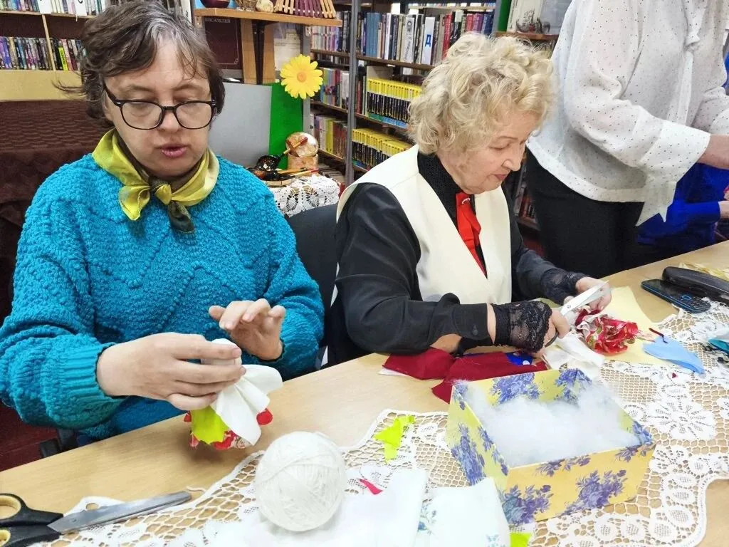 Участникам был показан библиотекарем Евстратовой А.Д. мастер – класс по изготовлению куклы – оберега – «Успеночка». Все с удовольствием приняли активное участие в изготовлении куклы, освоив технику изготовления, без использования игл, работая с тканью, нитками и лоскутами. Участники получили уникальные знания о символике народной куклы. Каждый сделал индивидуальный оберег, атмосфера была творческой и познавательной.